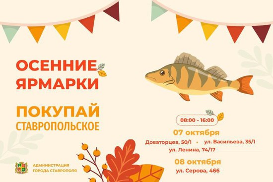 Купить ставропольские товары в субботу, 7 октября, можно по адресам: ул. Доваторцев, 50/1, ул. Васильева, 35/1, ул. Ленина, 74/17. В воскресенье, 8 октября, торговать будут на ул. Серова, 466. Время работы всех ярмарок с 8 до 16 часов.