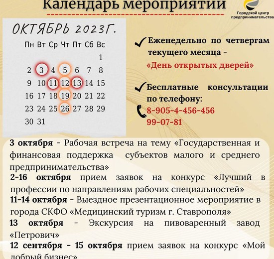 Стал известен бизнес-календарь мероприятий на октябрь в Ставрополе