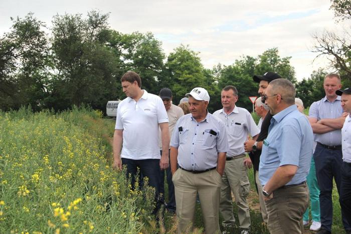 В ходе объезда полей аграрии поделились друг с другом опытом, рассказывая об особенностях посева озимой пшеницы и обработки полей, способах борьбы с вредителями и сорняками.