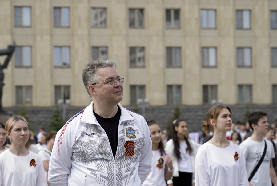 В Ставрополе зарядка прошла на главной площади края. Вместе с тысячей учащихся школ краевого центра в ней принял участие Губернатор Владимир Владимиров.
