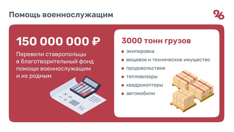 «Этот год уже по факту является для нас Годом защитников Отечества. Предлагаю его объявить таким официально. И отработать, его с главной мыслью в уме и в сердце — всё для передовой, всё для наших воинов!»— заявил губернатор Ставрополья Владимир Владимиров.