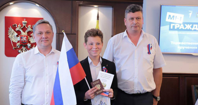 Сегодня, в День Государственного флага Российской Федерации, глава Пятигорска Дмитрий Ворошилов, вручил 11 юным пятигорчанам первые паспорта.