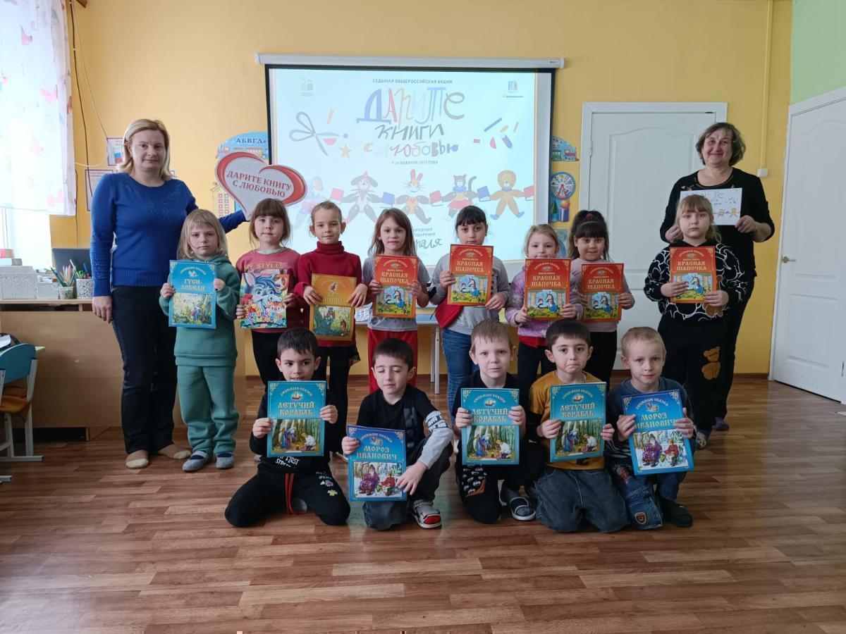 Сотрудники библиотеки-филиала № 14 (с. Дубовка) организовали для ребят МКДОУ «Детский сад № 24 с. Дубовка» праздник «Дарите книги с любовью!». Ребята посредством слайд-презентации познакомились с историей возникновения этого праздника и просмотрели видео «История создания книги». В ходе мероприятия воспитанники детского сада приняли участие в литературной видео-викторине по русским народным сказкам; в подвижной игре «Красная Шапочка»; отвечали на вопросы задания «Отгадай-ка», а также пробовали себя в роли художников в задании «Юный художник». Мультфильм «Лунтик. Книжные приключения» мотивировал ребят побыстрее научиться читать. А завершением праздника стало вручение ребятам книг, собранных для них пользователями библиотеки.