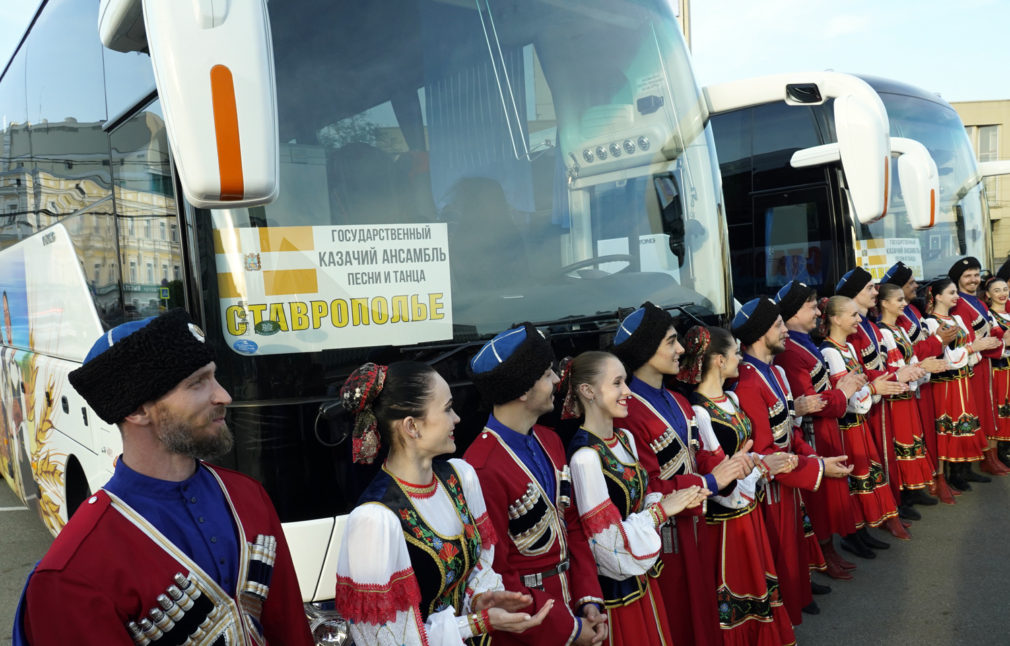 Губернатор Ставрополья Владимир Владимиров в преддверии Дня России вручил ключи от 2 автобусов Государственному казачьему ансамблю песни и танца «Ставрополье». Транспорт передали по просьбе коллектива, чтобы артисты могли гастролировать в том числе в отдалённые территории. Об этом сообщили в управлении пресс-службы и информполитики губернатора и правительства Ставрополья в субботу, 10 июня.