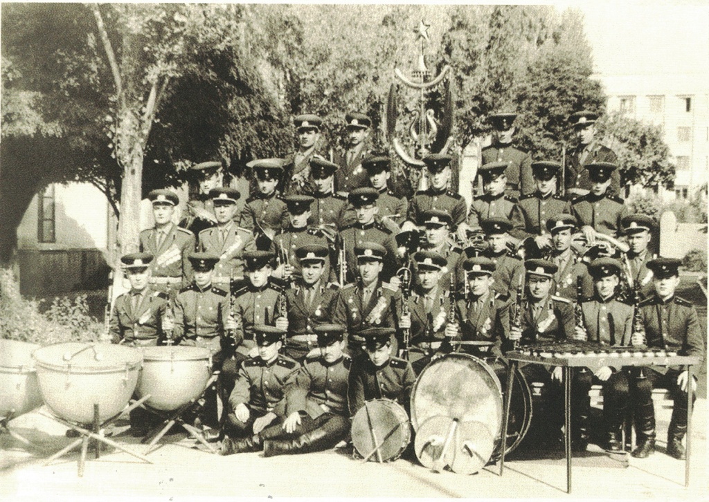 Выступление военного оркестра. Дирижер Д.А. Осиновский (в центре). 1973 г.