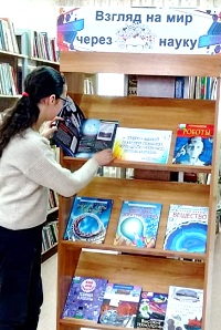 В рамках Недели науки и техники в центральной детской библиотеке был проведён обзор у книжной выставки «Взгляни на мир через науку».