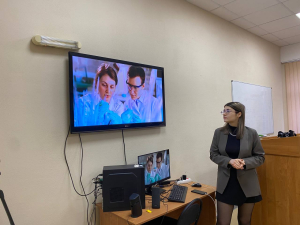 В рамках разговора преподаватель и студенты вспомнили имена известных российских ученых, обучающиеся поделились своими знаниями о российских научных открытиях. Далее, студентам был предложен интерактив «Научные открытия современных российских ученых», в ходе которого обучающиеся узнали больше фактов о науке России.