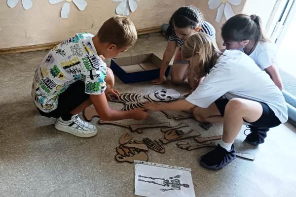 Маленькие воспитанники пришкольного лагеря в это время собирали пазлы с изображением народов Северного Кавказа в национальных костюмах и раскрашивали раскраски по этим же картинкам.