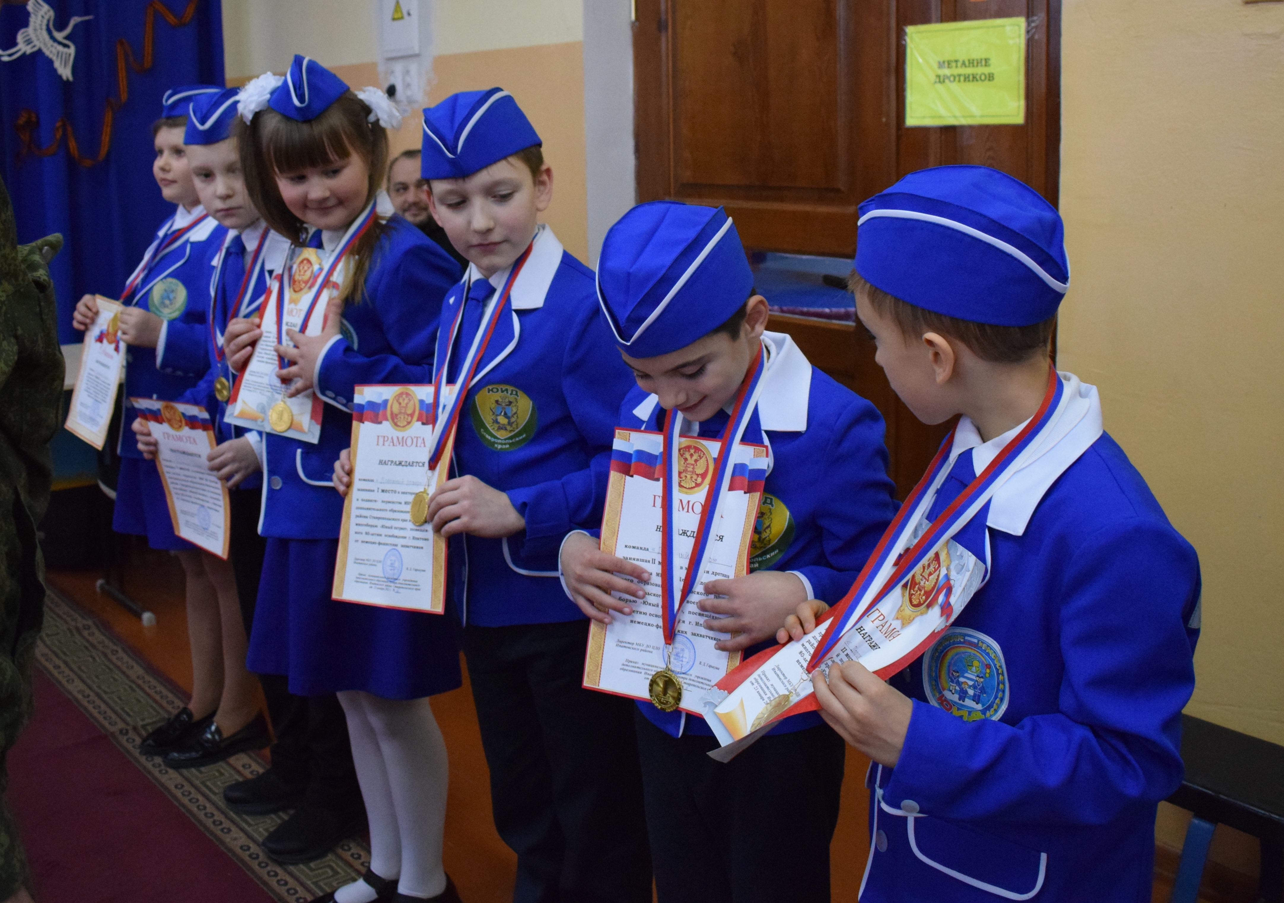 В Ипатово на базе Дома Юнармии прошло первенство Центра дополнительного образования по военному многоборью среди детских объединений ЦДО «Юный патриот». В нем приняли участие восемь команд в возрасте 7–10 лет: «Солнечная» (руководитель – С. Н. Романская), «Белая ладья» (Ю. В. Юрова), «Трансформеры» (М. Ю. Попрядуха), «Дорожный дозор» (Е. В. Сидоренко), «Неуловимые» (А. Ю. Стасенко), «Грация» (Н. Е. Демакина), «Спецназ» и «Ночные ведьмы» (А. В. Долбня). Юнармейцы продемонстрировали свои умения и навыки в строевой подготовке, в стрельбе из пневматической винтовки с оптическим прицелом, в метании дротиков, в оказании первой доврачебной помощи, прошли туристскую полосу препятствий, ответили на вопросы викторины на знание истории Ипатовского района в годы Великой Отечественной войны.