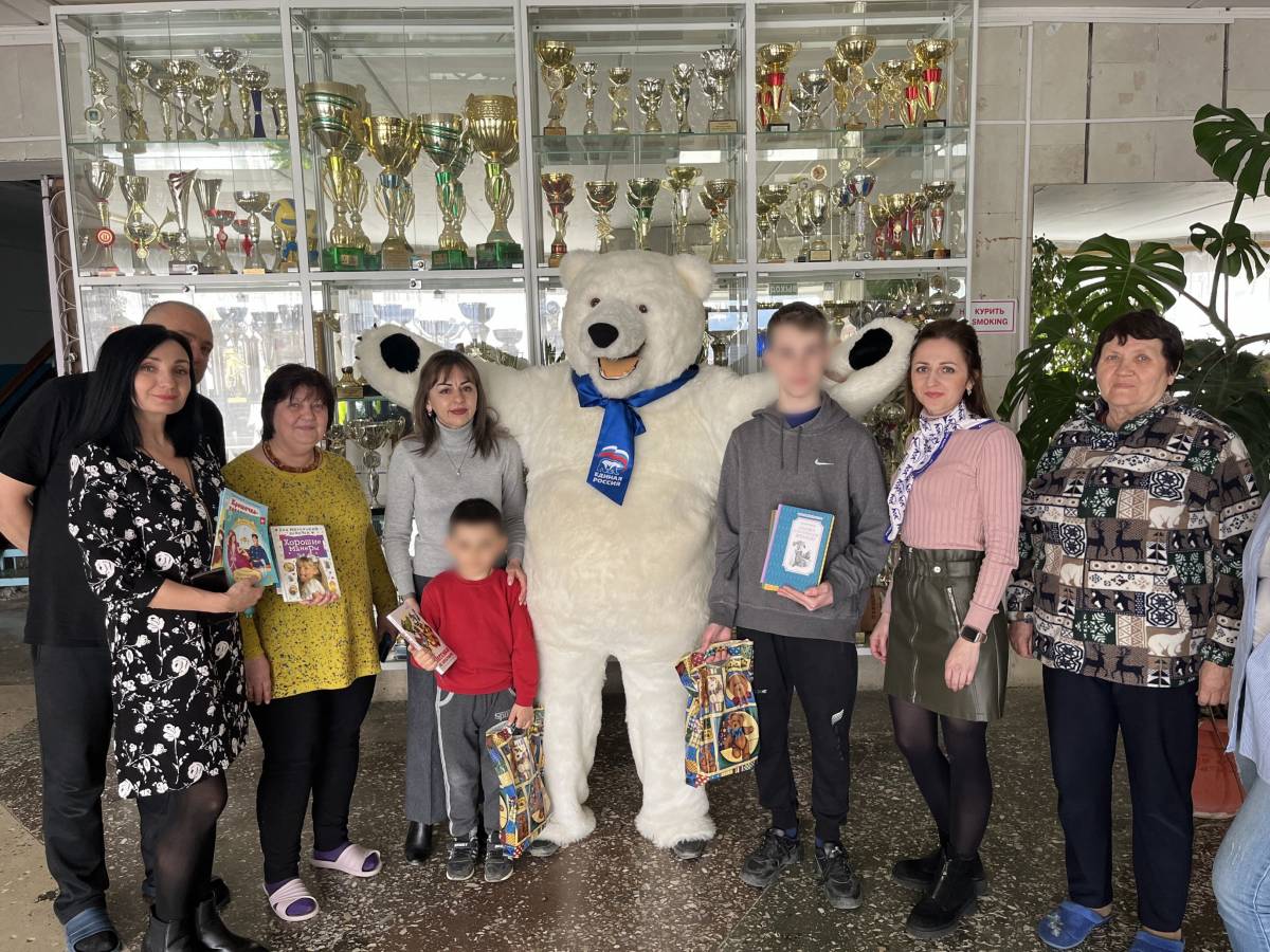 Коллектив Георгиевского местного отделения «Единой России» вместе с депутатом Еленой Воропай и Медведем Мишаней пришли в гости к детям, проживающим в ПВР. Они поздравили ребят с праздником и вручили им книжки и сладкие подарки.
