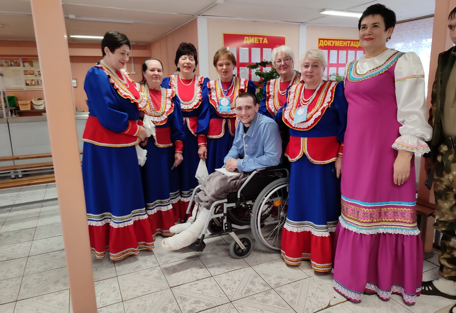В теплой атмосфере в военном госпитале г. Будённовска прошел концерт народного хора «Калинушка» из города Михайловск. Руководитель хора: Шматько Татьяна Алексеевна.