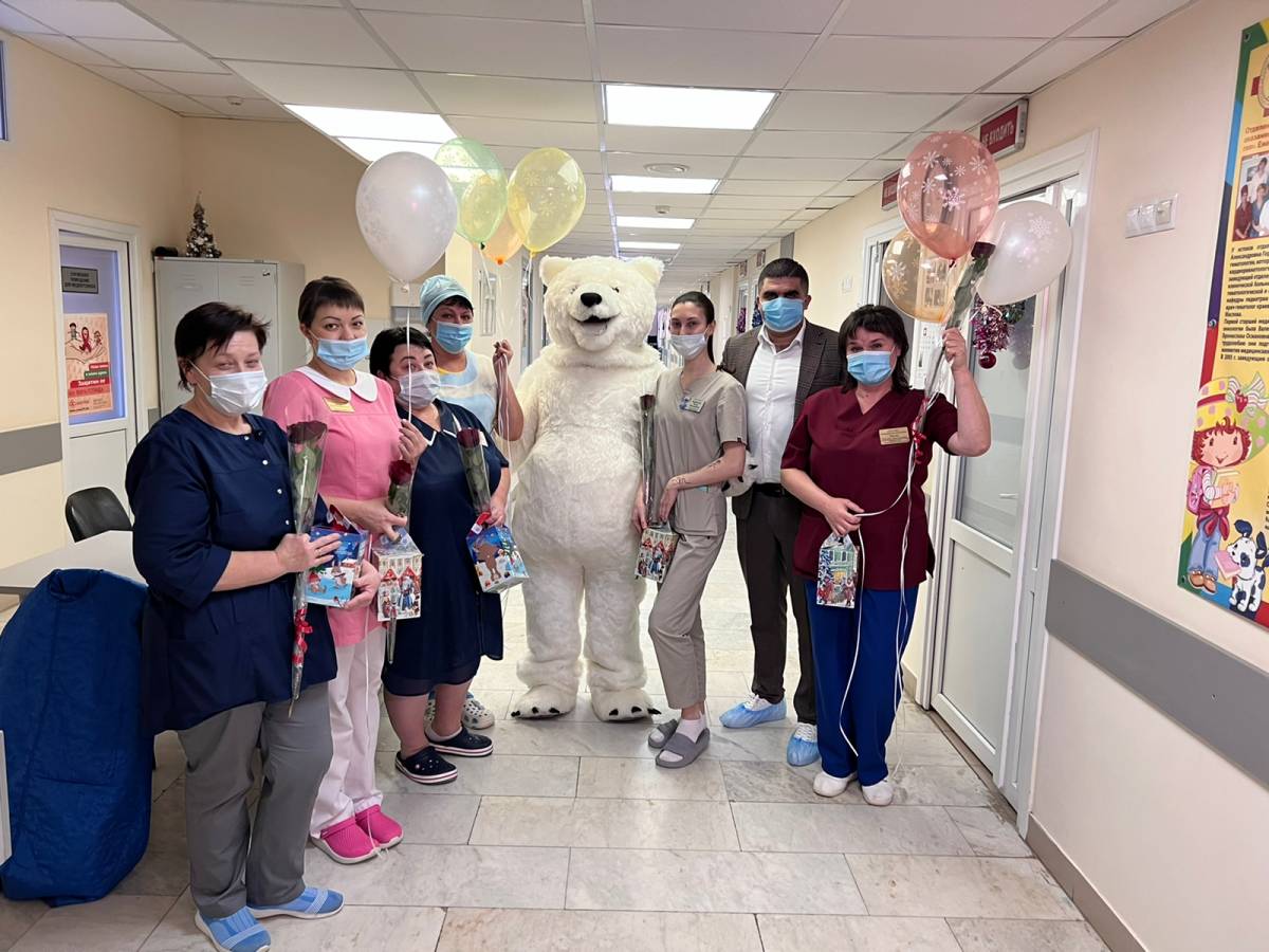 Отдельные слова благодарности и добрые пожелания прозвучали в адрес медицинского персонала отделения. Сотрудники также получили цветы, шары и сладкие подарки по случаю Нового года.