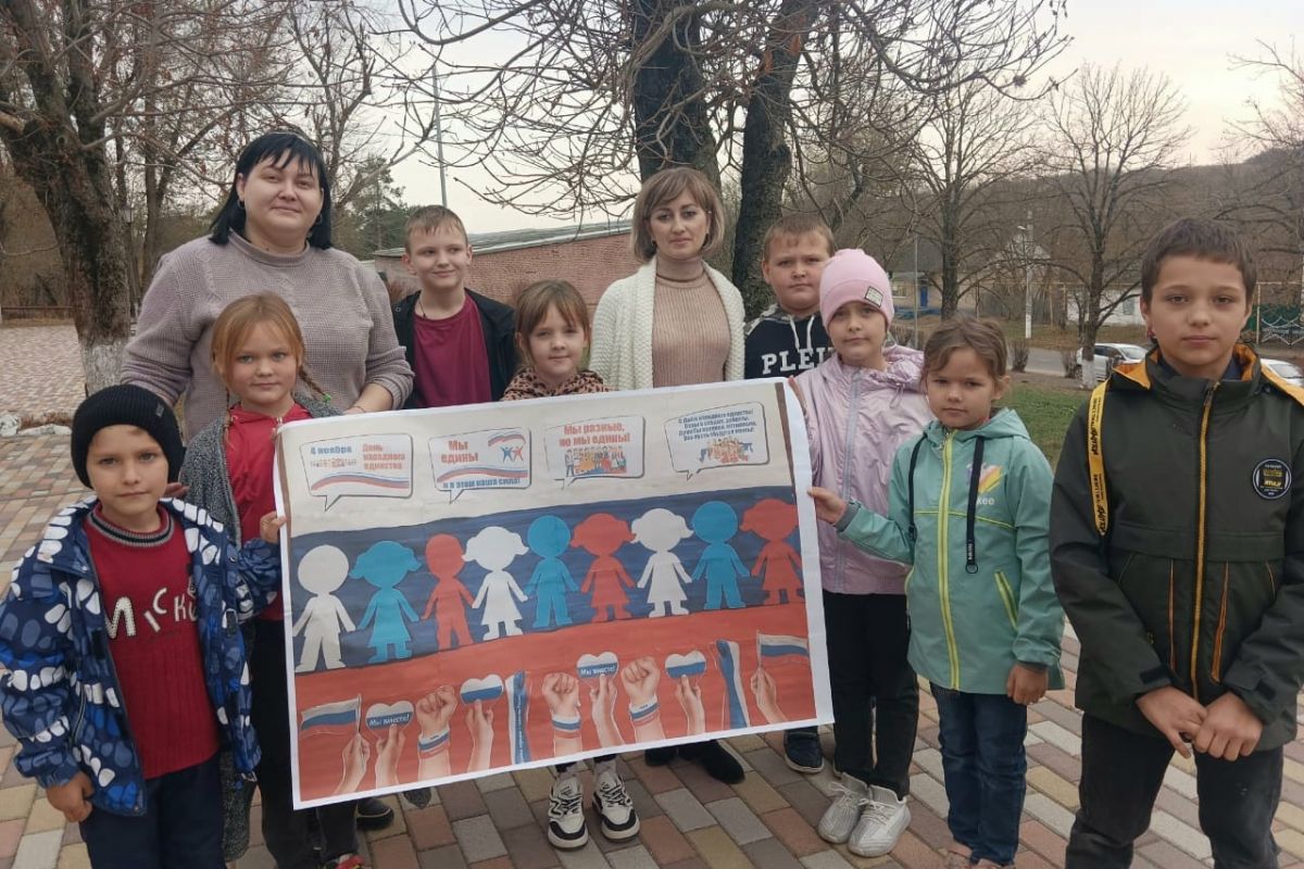Через детскую познавательную программу «Дороги мира и согласия» юные жители села познакомились с историей возникновения праздника, узнали о подвигах наших предков во имя независимости Отчизны, о том, как велика, красива и богата ресурсами наша страна, а также закрепили знания о государственных символах. Участвуя в игре «Объединяющее начало», собрали цветок «Единения».