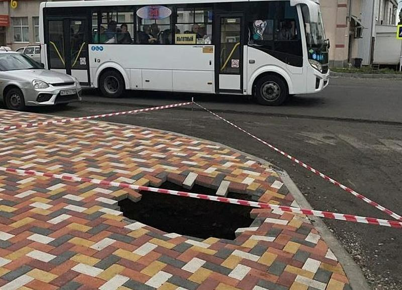 В воскресенье, 11 июня, на проспекте Юности в Ставрополе обвалилась плитка. Огромную яму оградили сотрудники администрации.