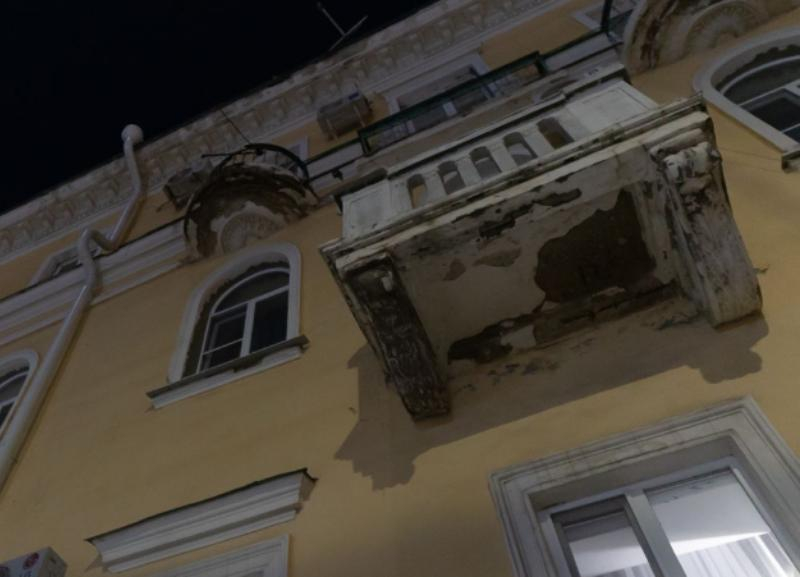 Часть балкона исторического здания в центре Ставрополя упала перед мужчиной