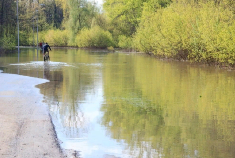 Впервые о подтоплении дороги стало известно со станицы Ессентукской. Там вместо асфальтированной дороги появилась быстрая речка.