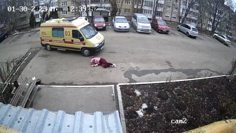 В сети появилась запись камеры видеонаблюдения. Она запечатлела, как женщина пытается увернуться от машины скорой помощи, пока водитель сдавал назад.