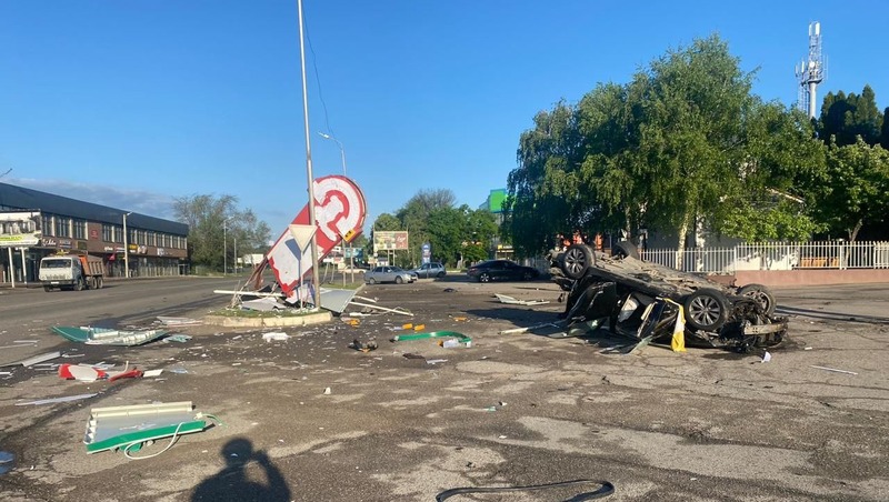 Из-за высокой скорости водитель из Ессентуков потерял управление автомобилем, въехал в рекламный щит на дорожном разделителе, после чего машина несколько раз перевернулась.