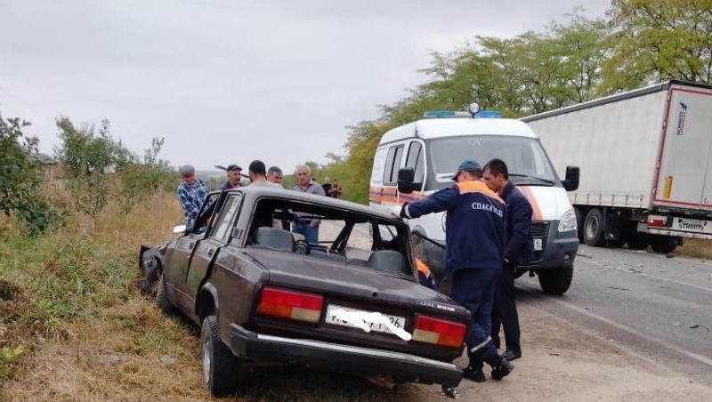 В Минераловодском округе произошло столкновение двух автомобилей: ВАЗ-2107 и фуры Volvo. К месту происшествия прибыли экстренные службы.