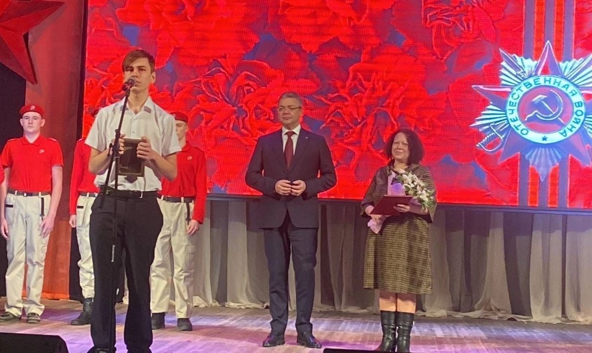 В ходе мероприятия, в Андроповском социально-культурном центре, Губернатор Ставропольского края В.В. Владимиров передал родственникам красноармейца смертный медальон, найденный участниками поискового отряда «Август» в Молдове. Федор Павлович Шкумат, родился в селе Казинка в 1919 году. Был призван в действующую армию, служил в городе Измаил. В первые дни войны защищал нашу страну от немецко-фашистских захватчиков. С июня 1941 года считался без вести пропавшим. Казалось бы, человек, ушедший на фронт, навсегда ушел из истории. Но память о нем всегда жила в семье. Благодаря родным и близким, которые все это время помнили о нем, правнуку Ивану, принявшему участие в конкурсе сочинений к празднованию 70-й годовщины Великой Победы, поисковой группе удалось найти семью Федора Павловича. Матери Ивана, Оксане Евгеньевне, прислали письмо. В нем говорилось о том, что в ходе поисковых работ у села Кошница Дубоссарского района, в окрестностях которого летом 1941 года гибли ребята 25-й и 95-й дивизий, отходивших за Днестр, был обнаружен смертный медальон. С большим трудом, в лабораторных условиях, из полуистлевшего вкладыша удалось извлечь информацию. Медальон принадлежал красноармейцу Федору Павловичу Шкумату. Великая Отечественная война поглотила в своем пламени 5 миллионов человек, не спросив напоследок, как их зовут. Но пропасть без вести – не значит раствориться во тьме истории.