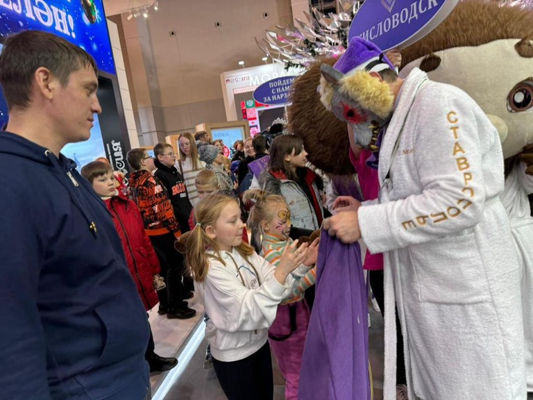 В Москве на ВДНХ на стенде Ставрополья прошла неделя туризма, в рамках которой Кисловодск во второй раз представил свою экспозицию на международной выставке-форуме «Россия». В течение всего дня на стенде Ставрополья делегация из Кисловодска подарила гостям выставки более 2 тысяч игрушек Чебурашек и тонну апельсинов.