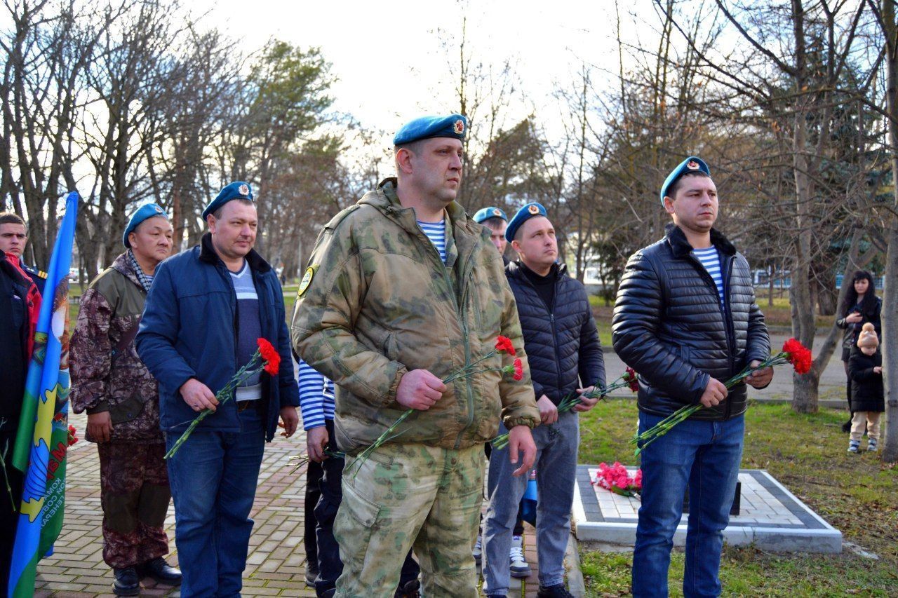 Георгиевские десантники, в том числе ветераны боевых действий разных лет, участники СВО собрались у памятного знака, чтобы отдать дань уважения легендарному командующему.