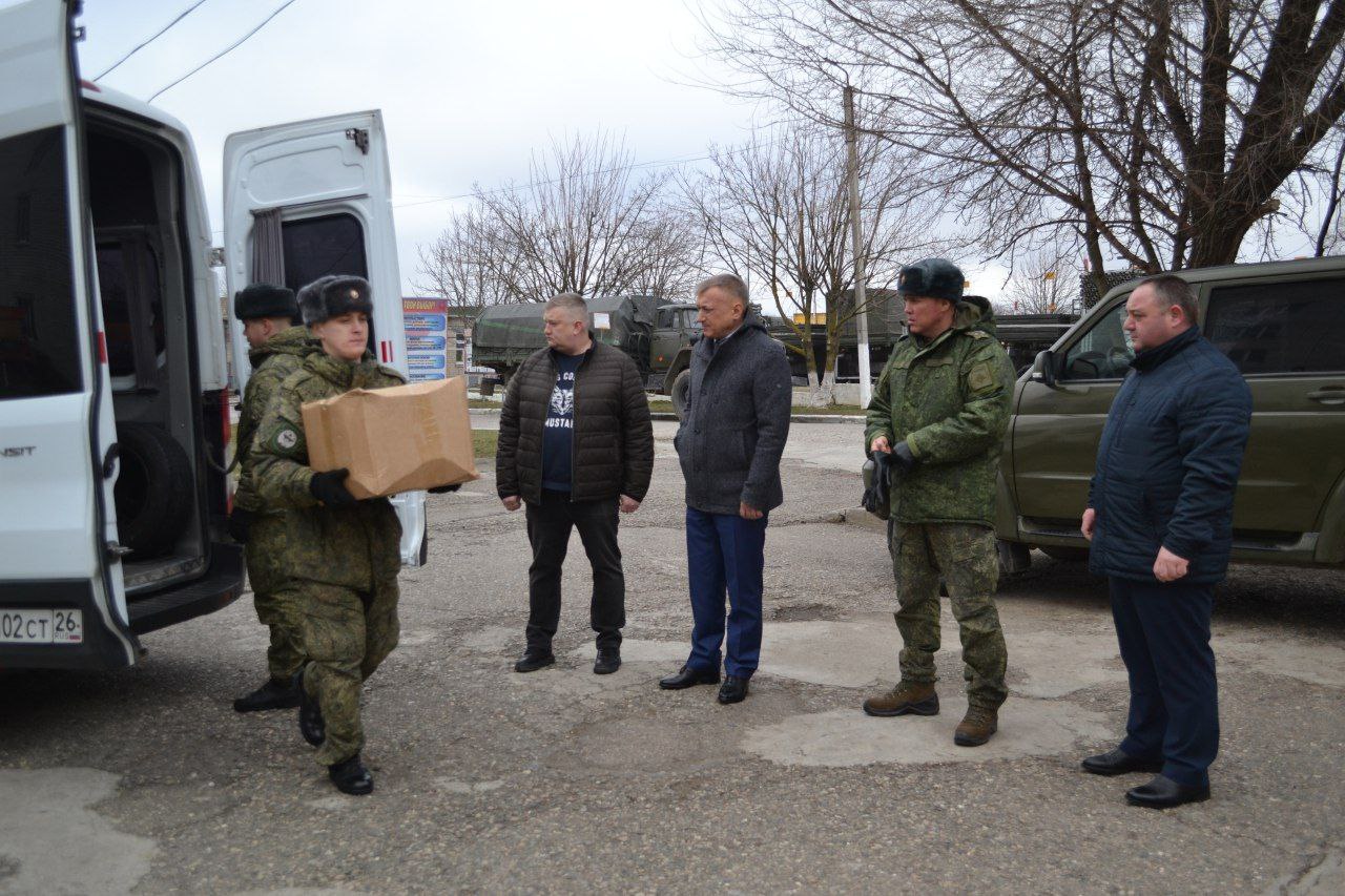 Глава Георгиевского округа Андрей Зайцев совместно с первым заместителем Ахиллесом Феодосиади и местным депутатом Виктором Лустиным привезли в воинскую часть гуманитарный груз, собранный предпринимателями,
