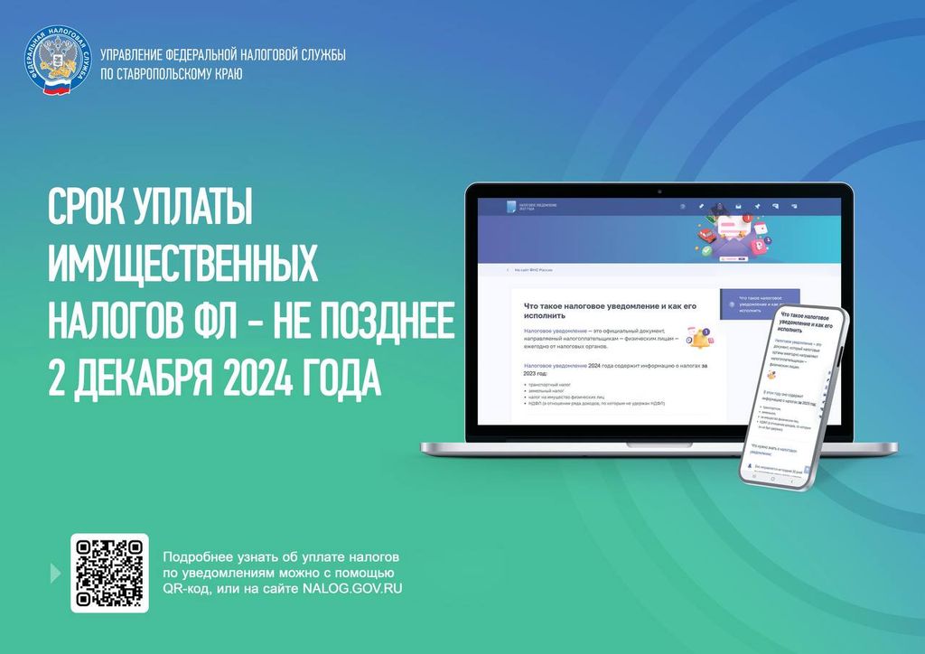 Управление федеральной налоговой службы России по Ставропольскому краю напоминает о своевременной оплате налогов.