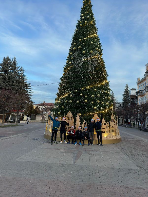 Семеро атлетов, пробежав 42 км, побывали и сфотографировались поочередно у трех главных новогодних ёлок городов КМВ!