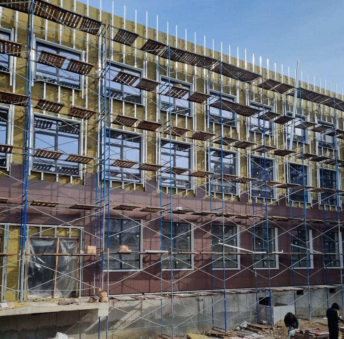 - На сегодняшний день в полном объеме завершили монолитные работы по устройству каркаса здания, выполнены перекрытия. Сейчас бригады строителей работают над покрытием кровли школы, параллельно завершают возведение ограждающих конструкций стен из кирпича и газосиликата. Этот материал применяется не только для устройства несущих элементов зданий, но и для повышения теплоизоляции, защиты инженерных сетей. Их прокладка продолжается, как и штукатурные работы. Также приступили к устройству стяжек. С внутренней части школьного двора идет облицовка фасада керамогранитом, - рассказал о процессе строительства градоначальник.