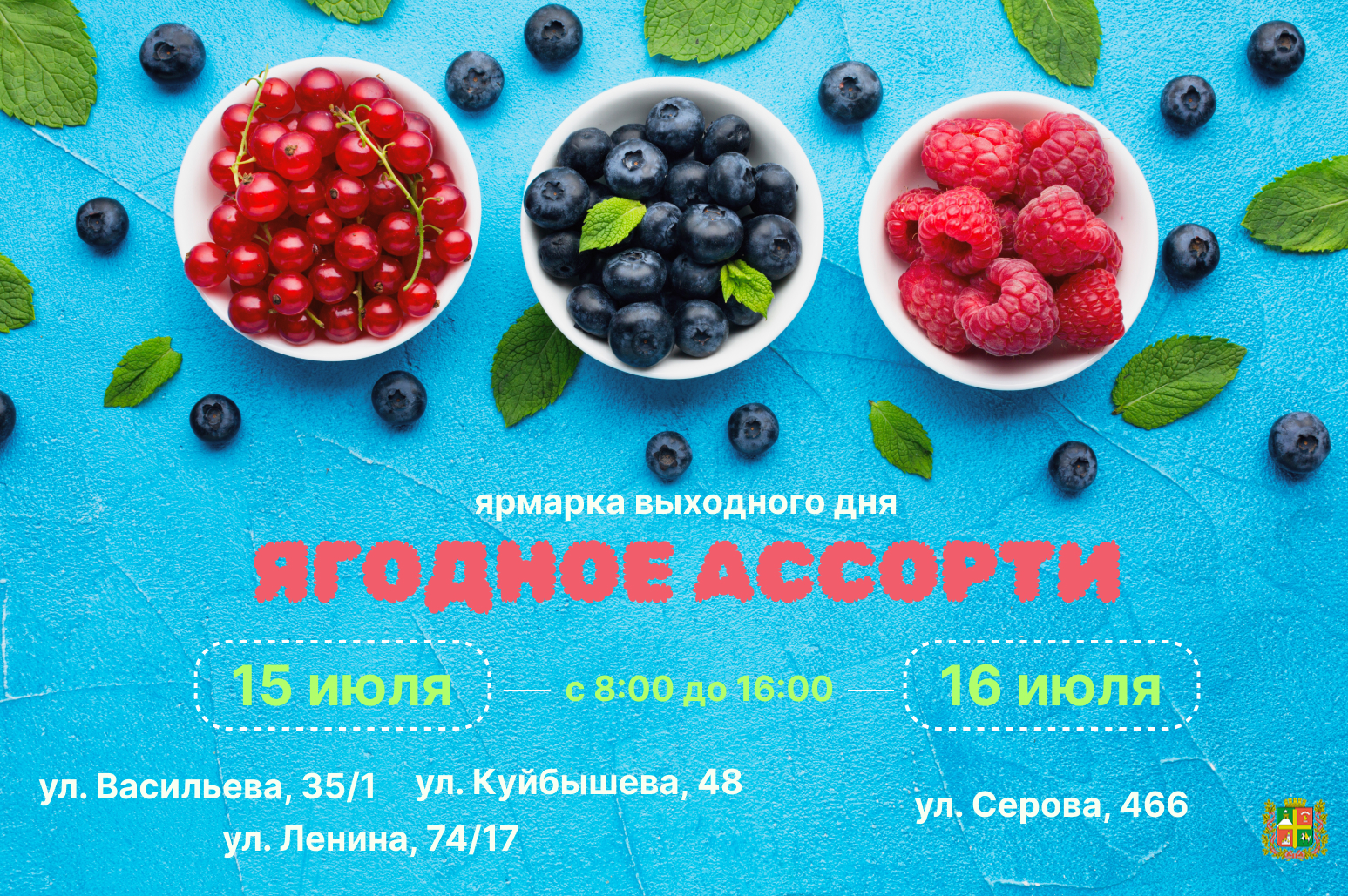 В субботу и воскресенье ярмарки выходного дня порадуют покупателей разнообразием ароматных и аппетитных ягод.