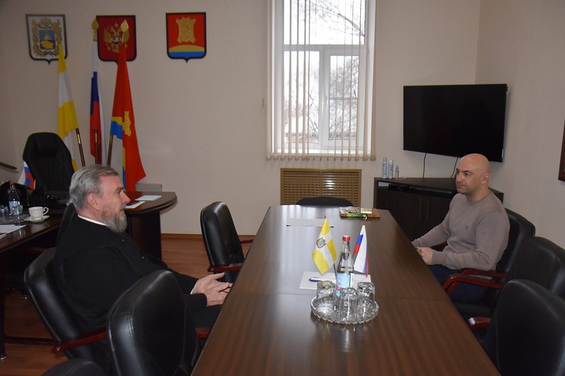 3 февраля 2023 года благочинный Дивенского округа протоиерей Георгий Чекрыгин встретился с главой Апанасенковского муниципального округа Денисом Климовым.