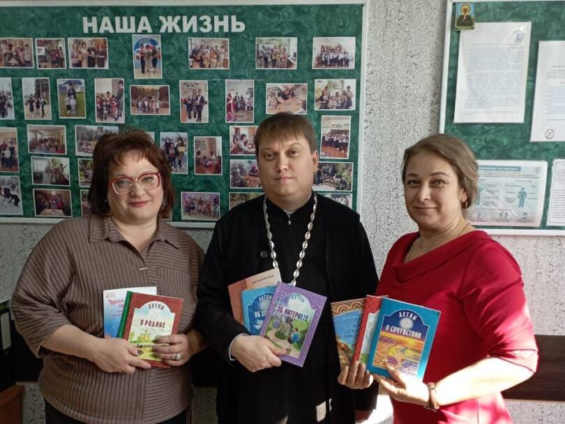 Отец Анастасий передал в дар центру детские православные книги, рассказывающие о жизни святых, о христианских добродетелях и об отношении к ближним. В ходе социально-педагогического патронажа книги получат дети из семей Труновского муниципального округа, находящиеся в трудной жизненной ситуации и находящиеся на обслуживании в Труновском комплексном центре социального обслуживания населения.