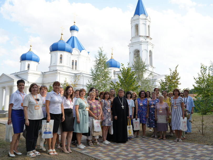 Гости Форума посетили с экскурсией село Труновское. Одним из пунктов экскурсии стал храм Покрова Пресвятой Богородицы. О святынях храма и его истории рассказал благочинный Донского округа, настоятель храма Покрова Пресвятой Богородицы села Труновское священник Анастасий Акинин. На память о посещении храма всем участникам встречи отец Анастасий вручил памятные подарки.