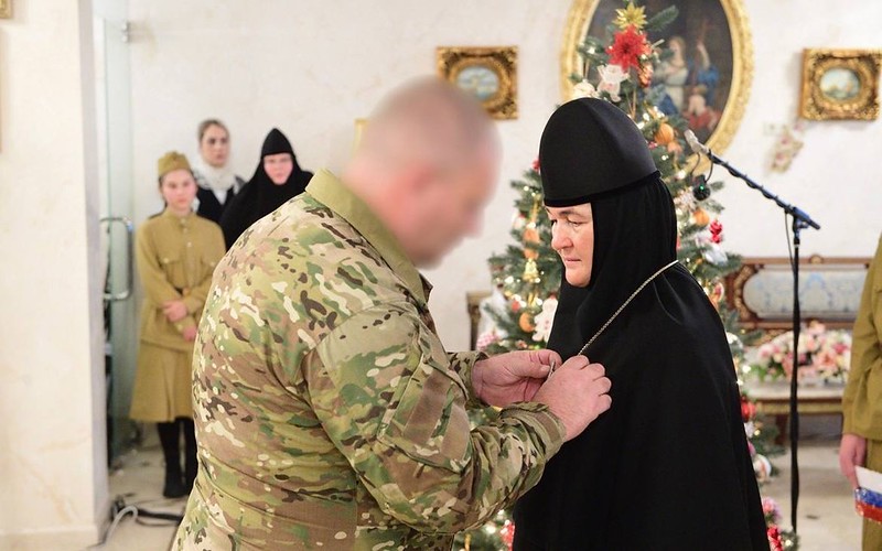 В завершение концерта представители 6-й Общевойсковой армии (Западный военный округ) торжественно вручили игумении Феофании медаль «За укрепление боевого содружества».