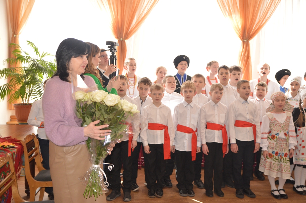 Ребята, разодетые в казачьи и русские национальные костюмы, радостно приветствовали Светлану Борисовну и гостей праздника. Дети пели песни и читали стихи. Третьеклассник Тихон Нещерет задорно играл на баяне, а учащиеся 4 класса представили зрителям сценку по стихотворению Сергея Михалкова «Как старик корову продавал». Гимназический ансамбль исполнил две казачьи песни: «Полно вам, казаченьки, горе горевать» и «Ой при лужку, при лужку».