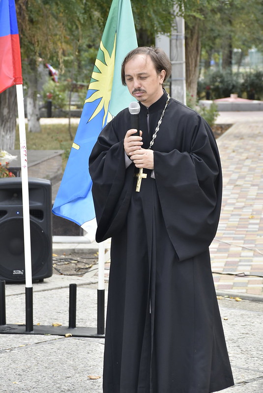 Всех участников торжественного мероприятия приветствовал клирик Свято — Успенского храма с. Кочубеевского иерей Алексей Калиткин.