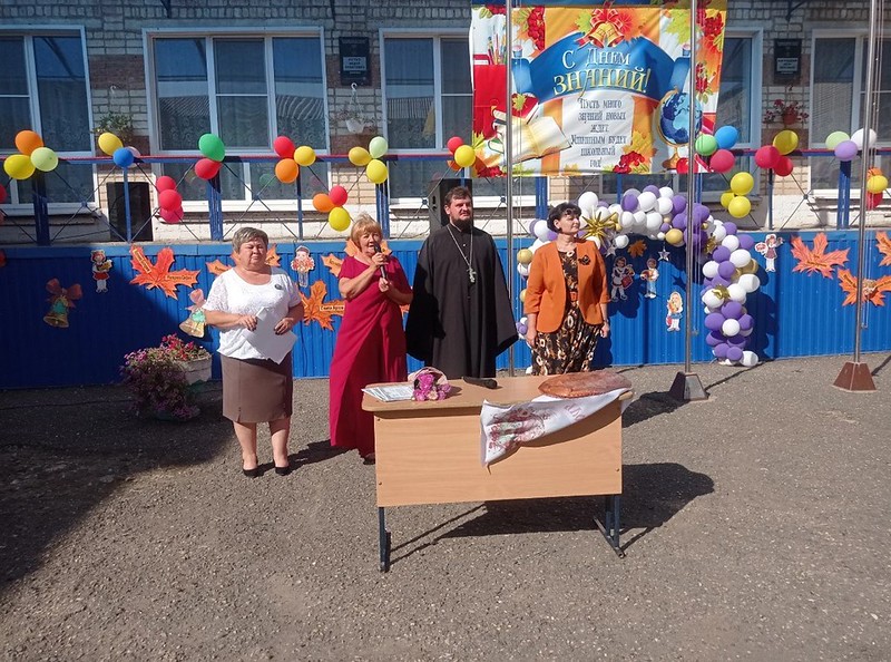 1 сентября в МКОУ СОШ №8 с. Тахта, состоялась торжественная линейка посвященная Дню Знаний, на которую был приглошен настоятель храма Архистратига Михаила иерей Виктор Останков.