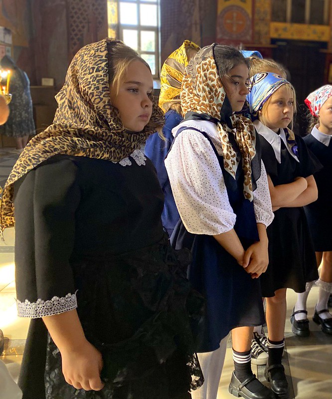 27 сентября 2023 года, в праздник Воздвижения Креста Господня, клирик Спасо-Преображенского собора города Изобильного иерей Евгений Калядин провёл экскурсию по храму для учащихся средней общеобразовательной школы.