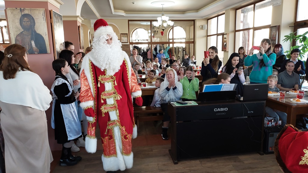 Воспитанники воскресной школы и подготовительного класса Православной Свято-Никольской классической гимназии под руководством заведующей воскресной школой Т.С. Синявской и учителя церковного пения гимназии Е.М. Игнатенко подготовили праздничный концерт, на который были приглашены родители учащихся. Мероприятие прошло в духовно-просветительском центре «Знамение». Дети чистым сердцем славили Богомладенца Христа – пели песни, читали стихотворения. Затем все с восторгом встретили Деда Мороза и Снегурочку, играли с ними в игры и водили хоровод.
