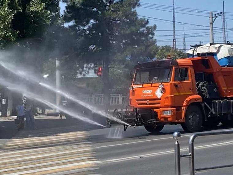 Сегодня, как только градусник стал показывать больше +33, коммунальщики курорта выехали на центральные магистрали города. Дорожное полотно ул.Октябрьской, Вокзальной, Железнодорожной, Первомайской, Пятигорской и курзоны прошли уже несколько раз.