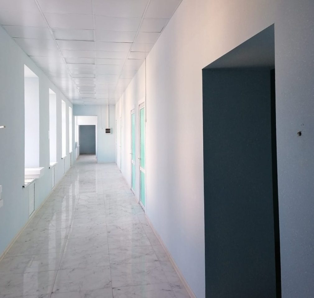 И. о. министра здравоохранения региона отметил, что работы идут согласно графику. Ремонт начали в 2022 году. К настоящему времени заменили коммуникации и кровлю.