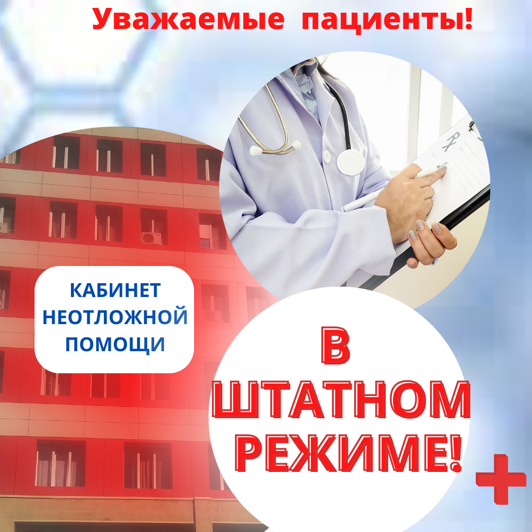 Кабинет неотложной помощи поликлиники работает с 8-00 до 19-00, детской поликлиники - с 8-00 до 18-00.