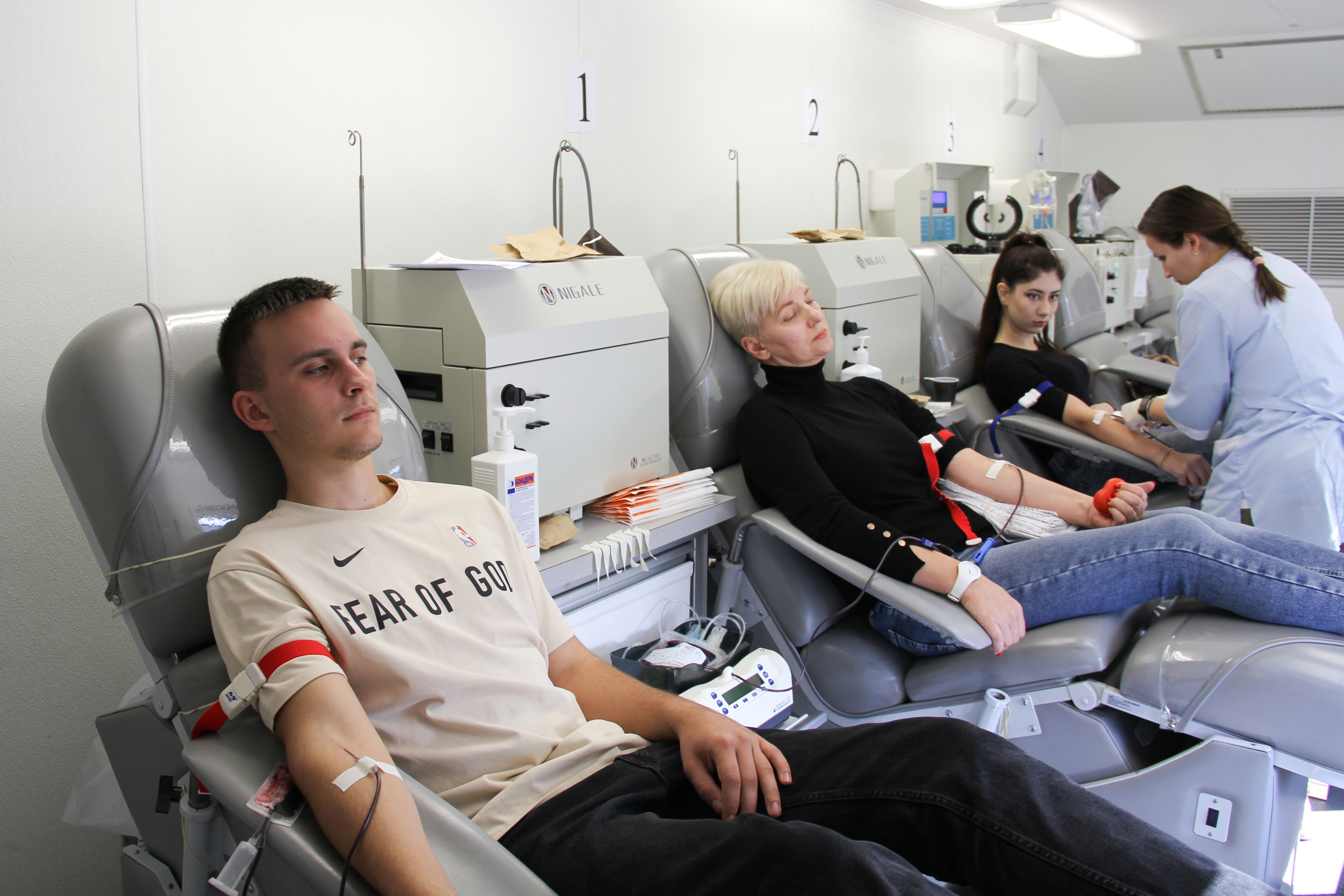 Студенты, преподаватели и сотрудники Пятигорского института СКФУ приняли участие в Дне донора. Выездная бригада Центра крови ФГБУ СКФНКЦ ФМБА России провела консультации и организовала процедуру забора крови и плазмы на современном оборудовании специализированной передвижной лаборатории. Специалисты сделали каждому анализ крови из пальца и проверили артериальное давление. Предварительное обследование делается обязательно, потому что нельзя оказывать помощь другому в ущерб собственному здоровью.