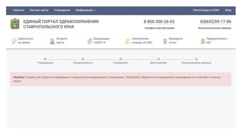 Жительница краевой столицы написала в редакцию ИА «Победа26», что с прошлого года не могла записаться к врачу в ставропольскую клиническую консультативно-диагностическую поликлинику через единый портал здравоохранения Ставрополья. Через сайт поликлиники, который женщина нашла в интернете, сделать этого тоже не удалось.