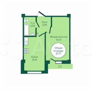 Общая площадь: 37,77 Жилая площадь: 16,13 площадь просторной кухни 12,41