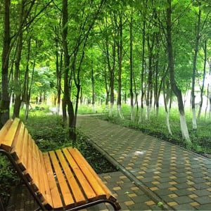 ✔Сердце комплекса – кленовая аллея с фонарным освещением и скамейками