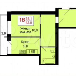 - Общая площадь: 38.1 м²